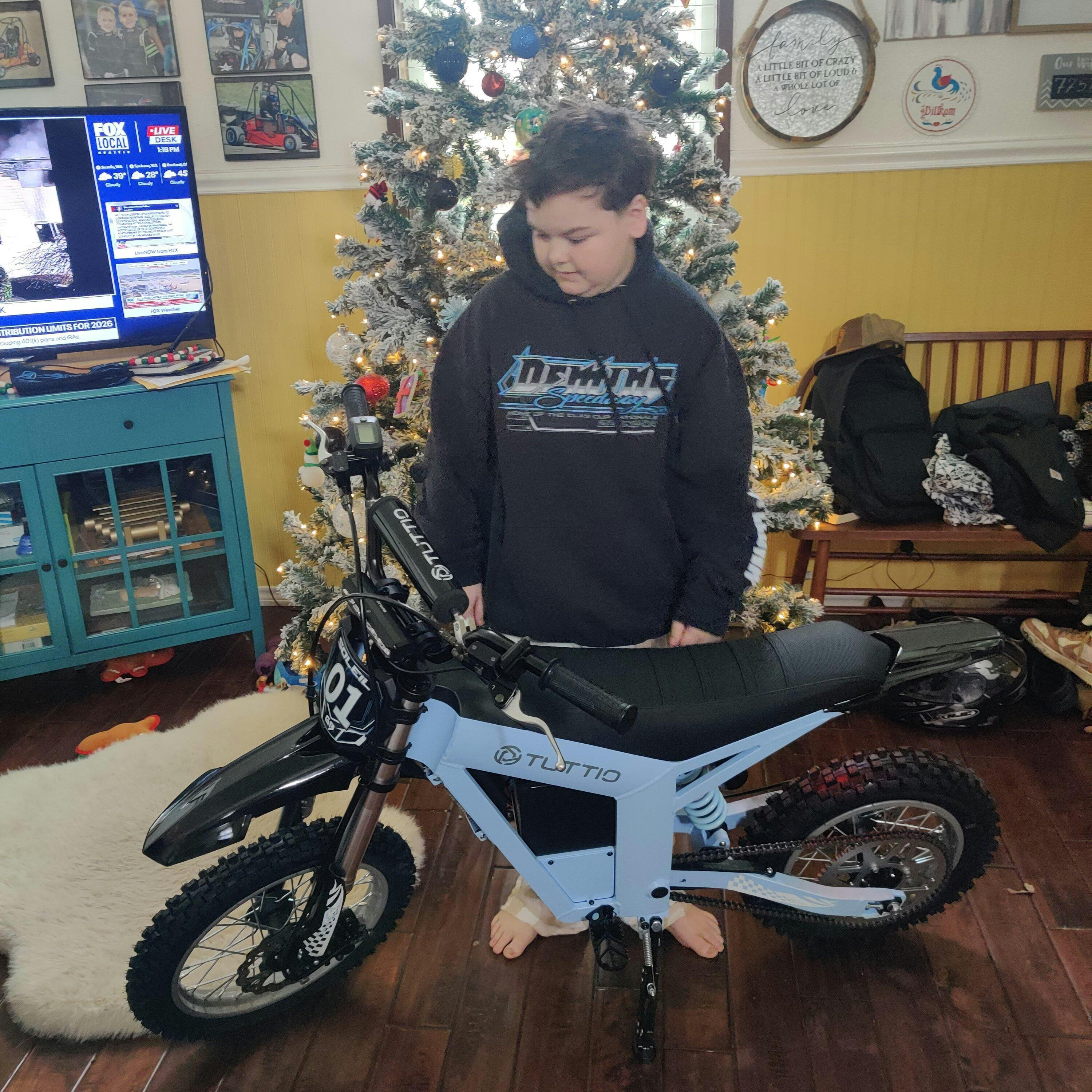 Thank you for sharing your positive experience with the Tuttio Soleil01 GB Electric Dirt Bike. We are thrilled to hear that your son loves his new bike and that our customer service team was able to assist you during the holiday season. We take pride in our high-quality bikes and we are glad to hear that your husband is now interested in getting one too. We hope your son continues to have a blast riding his new bike! Happy riding!